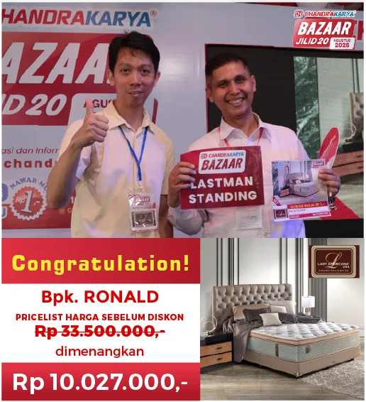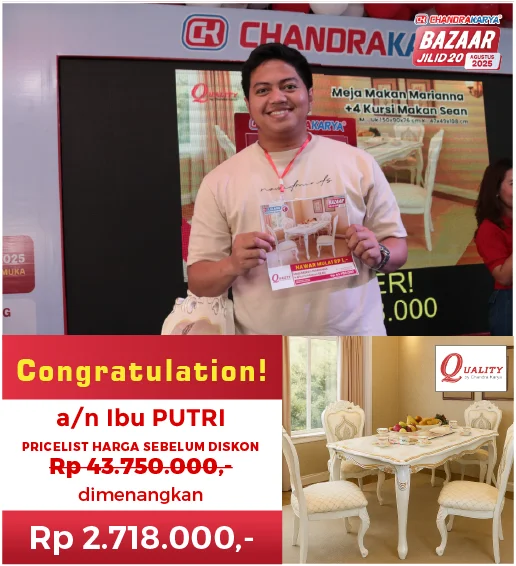 Disclaimer: Chandra Karya tidak membuat program promosi penaikan rating dengan iming-iming cashback ataupun hadiah lainnya secara online. Apabila ada penawaran mengatasnamakan hal-hal tersebut, bukanlah tanggung jawab dari Chandra Karya